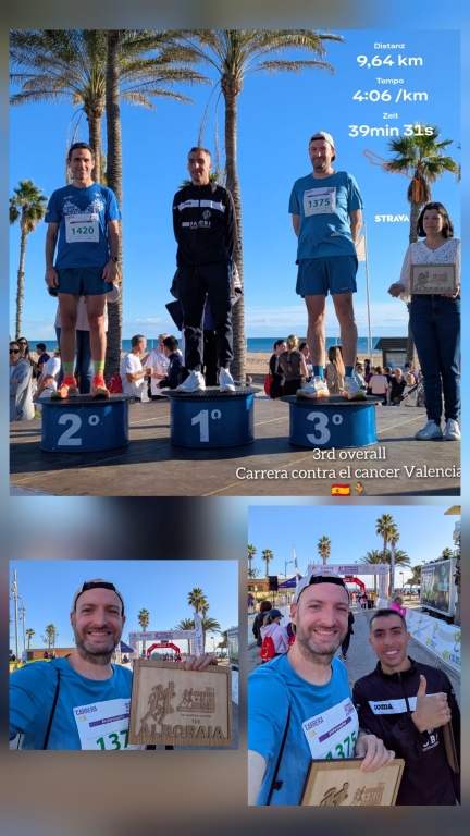 Beim 10-km-Lauf der „Carrera contra el Cáncer“ in Valencia (Sonntag, 16.11.2025) erlebte Steffen Suffel einen außergewöhnlich chaotischen Rennverlauf. Der Start war von wildem Durcheinander geprägt („most chaotic start ever“), und auch auf der Strecke ging es turbulent weiter: Zwischenzeitlich war Steffen fast völlig allein unterwegs, während vor ihm ein Läufer abkürzte. Mit einer eigenen Zeit knapp unter 40 Minuten und dem Gefühl, irgendwo zwischen Platz 5 und 7 einzulaufen, wusste Steffen zunächst gar nicht, wo er letztlich gelandet war.