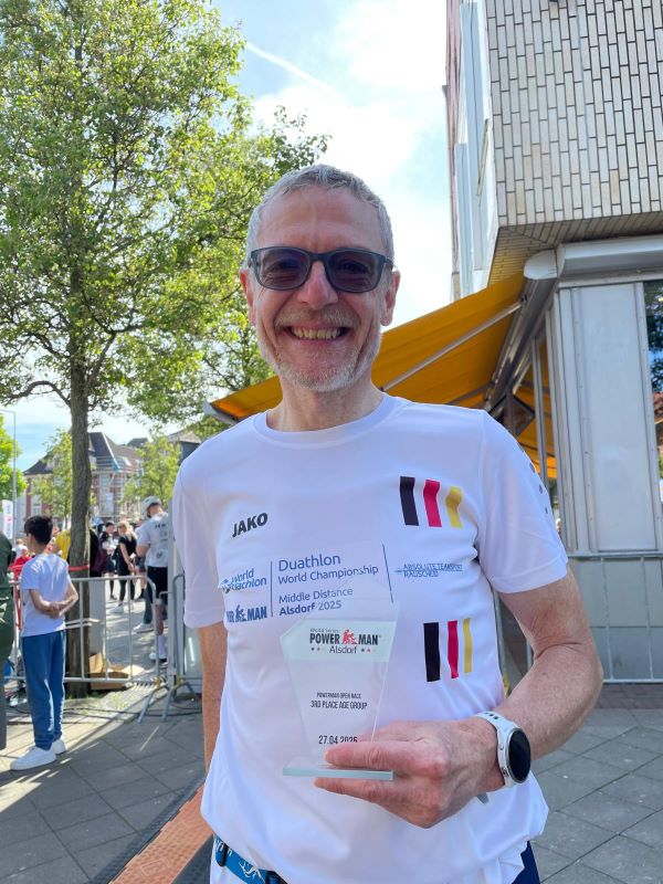 Beim Duathlon-Powerman in Alsdorf hatte sich Olaf Meister auf der Mitteldistanz (10 km Laufen, 60 km Radfahren, 10 km Laufen) angemeldet und überzeugte mit einer sehr starken Leistung. Die ersten 10 km lief Olaf unter 50 Minuten, die 60 km Rad fuhr Olaf fast in einem Schnitt von 35 km/h und absolvierte die letzten 10 km in 53 Minuten. Dank dieser starken Leistung erreichte Olaf den 3. Platz in der AK 60 in der Kategorie „Open Race“.